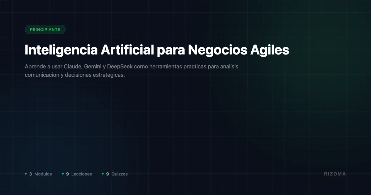 Aprende a usar Claude, Gemini y DeepSeek como herramientas prácticas para tu trabajo diario. Este curso desmitifica la IA generativa, te enseña a escribir prompts efectivos, y te muestra cómo aplicar estos modelos a análisis, comunicación y decisiones estratégicas. No requiere programación ni conocimientos técnicos previos.